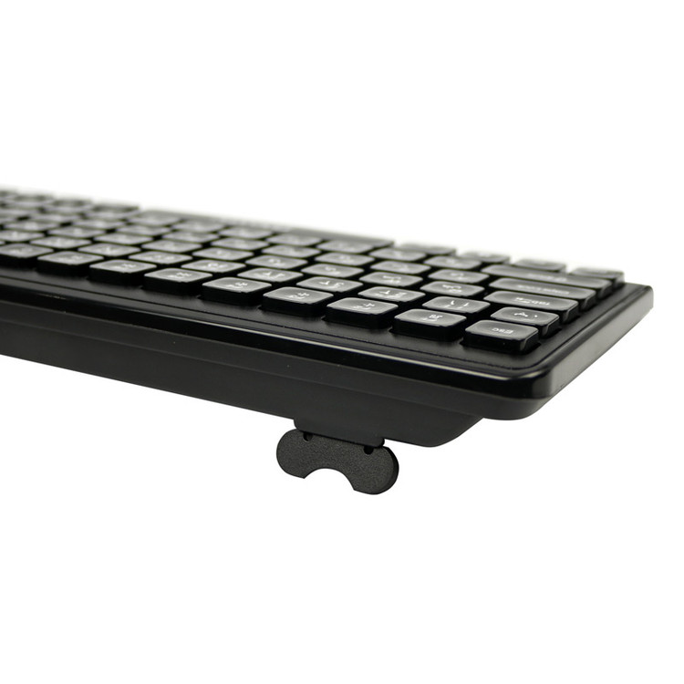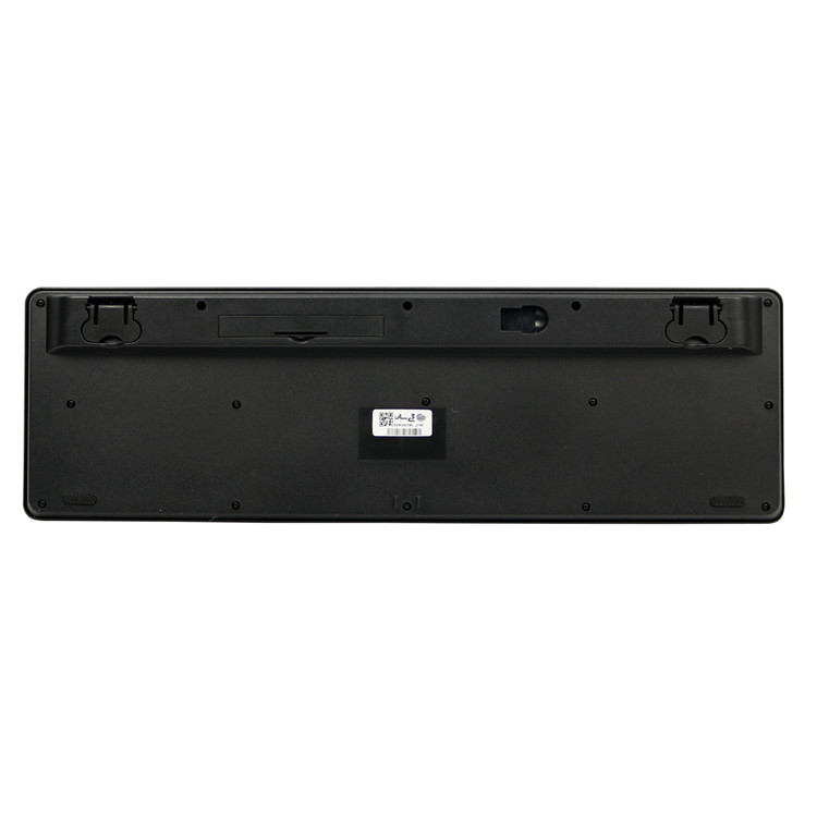 کیبورد ساخته شده از جنس پلاستیک ABS مقاوم در برابر ضربه و شوک، دارای ۱۰۴ عدد کلید فیزیکی شامل کلید فانکشنموس دارای ۴ عدد کلید فیزیکی و کلید روشن خاموش تعبیه شده در قسمت زیرین با حسگر از نوع اپتیکال و میزان دقت ۱۰۰۰ نقطه در اینچاتصال بی سیم از طریق رابط USB با برد اتصال بی سیم تقریبی ۱۰ متر با فرکانس کاری ۲٫۴ گیگاهرتز و پشتیبانی از اتصال Plug & Playتامین انرژی از طریق ۱ عدد باتری قلمی AA، میزان ضربه پذیری کلید های کیبورد به طور تقریبی حدود ۱۰ میلیون کلیکنقد و بررسی