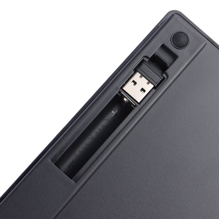 اتصال کیبورد بصورت بی سیم توسط دانگل USB با فرکانس بی سیم 2.4 گیگاهرتز و برد اتصال تقریبی 10 متر