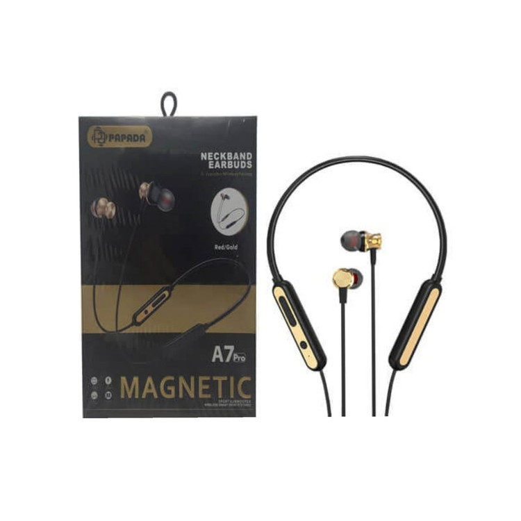 هدفون پاپادا بی سیم A7 PRO قابلیت اتصال بصورت بی سیم از طریق بلوتوث نسخه 4.2 به موبایل، تبلت یا دستگاه های دیگر شما را دارد که برد آن 10 متر می باشد. و گوشی های آن دارای قابلیت آهنربایی می باشند و می توانند از پشت به یک دیگر متصل شوند. A7 با وجود داشتن بدنه پلاستیکی دارای وزن 35 گرمی می باشد که باعث راحتی شما در هنگام استفاده از آن می شود. باتری این هدفون توان پخش موسیقی به مدت 7 ساعت را دارای می باشد که مدت زمان خوبی برای پخش موسیقی است. در نهایت این هدفون می تواند با ظاهر زیبایی که دارد در کنار کارایی هایش گزینه مناسبی برای شما باشد