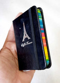 دفترچه فانتزی جلد چرمی وارداتی- کش دار - طرح برج ایفل- بغل رنگی