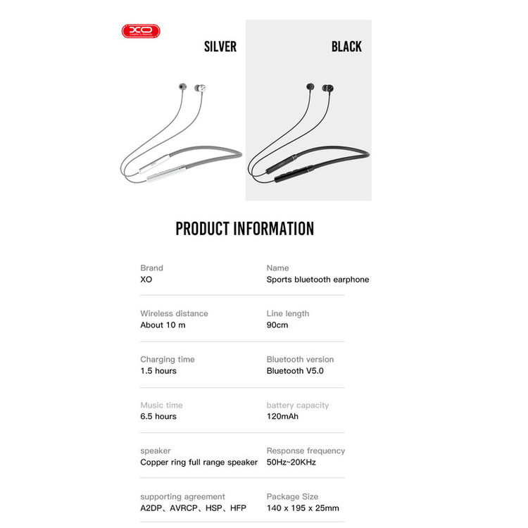 برند XO از معتبرترین برندهای بوده که کیفیت محصولاتش بسیار بالا بوده و بسته بندیهای آنها نیز از سطح کیفی بالا و ظاهری شکیل برخوردار است.پیشتر نام این برند در بازار ایران تنها در حوزه محافظهای صفحه نمایش و گارد شنیده میشد، اما مدتیست که سایر محصولات این کمپانی خوشنام فراگیرتر شده و محصولات بیشتری وارد بازار خاورمیانه و ایران شده است. BS19 نام یکی از هندزفریهای بلوتوثی ساخت این شرکت بوده که از طراحی شیک و زیبایی بهره می جوید و با بدنهای با کیفیت و مرغوب تولید شده است.گوشیهای این هندزفری آلیاژی از فلز بوده و حتما این نکته را میدانید که بکارگیری فلز در ساختار اصلی کیفیت صدا تا حد چشمگیری بالا میبرد. ساختار این هندزفری با کیفیت و با طول عمر زیاد بوده و به رغم طراحی ارگونومیک و منطبق بر گوش، از آن میتوان در تمامی شرایط و برای طولانی مدت استفاده کرد. این هدفون امکانی را گرد هم آورده تا انواع سبک های موسیقی را با تمام جزئیات بشنوید. کیفیت صدایی فوق العادهی استریو با قابلیت تفکیک صدایی عالی. همچنین این هندزفری بلوتوث ضد تعرق بوده و میتوان از آن بدون واهمه داشتن از صدمه دیدن بر اثر عرق کردن در ورزش از آن استفاده کرد. این هندزفری بلوتوث قابلیت پخش موسیقی به مدت 8 ساعت را به طور متوالی دارد و مکالمه مداوم 8 ساعته.