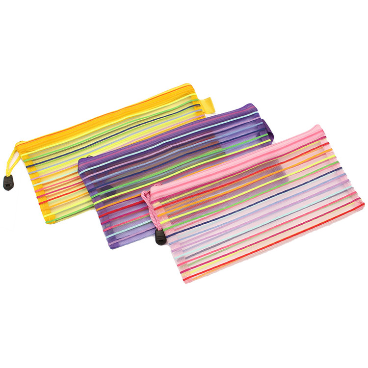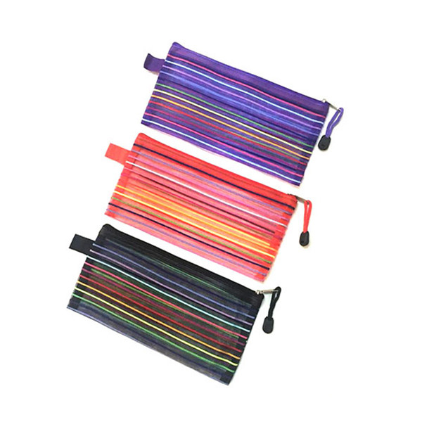 جامدادی توری راه راه رنگی تک زیپ.