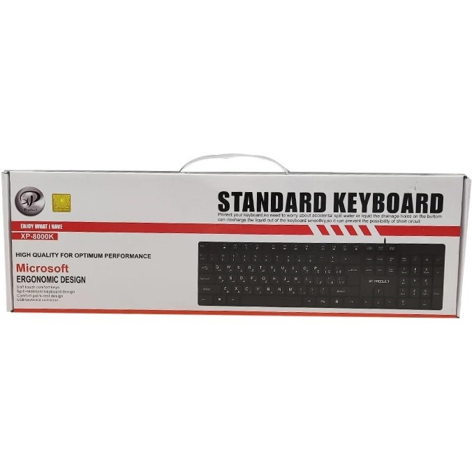 کیبورد ایکس پی-پروداکت مدل XP-8000 از جمله محصولات مقرون به صرفه موجود در بازار است که برای کاربری عمومی میتواند گزینهای مناسب باشد. حروف، اعداد و علامتهایی که روی کلیدهای کیبورد XP-8000 حک شدهاند، کاملا بزرگ و شفاف هستند تا به راحتی قابل خواندن باشند و نیازی به دقت زیاد در هنگام استفاده از آن نباشد. این کیبورد کاملا ساده و کاربردی طراحی شده و به دلیل بهرهبری از کلیدهای استاندارد و بسیار نرمی که به ندرت صدایی از خود ایجاد میکنند، قابلیت یک تایپ بسیار نرم، روان و تقریبا بیصدا را برای شما به ارمغان میآورد.این کیبورد دارای پایههای خم شونده است که قابل تنظیم ارتفاع را به شما میدهند. بنابراین شما میتوانید به دو صورت کاملا خوابیده یا به صورتی که قسمت پشت آن توسط پایهها کمی بلند شده، کار کنید.