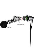 دیافراگمهای کامپوزیت تیتانیوم و پلیاتیلن ترفتالات (PET) یک درایور داینامیک و دو درایور آرمیچر متعادل در هر گوشی (Triple Driver)