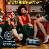 اسپیکر بلوتوث دبلیو کینگ D10 دارای درگاه اتصال میکروفون سیمی 6.35 میلیمتر است و شما می توانید میکروفون را به صورت سیمی به این اسپیکر متصل کنید.