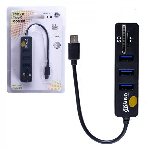 هاب 3 پورت و رابط تایپ سی + رم ریدر کی لینک (KLINK) مدل K-8191