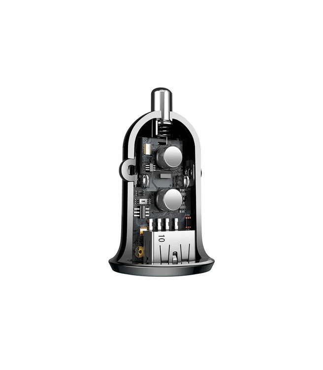 کمپانی باسئوس (Baseus) با فعالیت در حیطه لوازم جانبی دیجیتال شناخته شده که محصولاتی با کیفیت و متنوع از جمله کابل، کاور، شارژر، هدفون، اسپیکر و... را با ایده های جدید، طراحی زیبا و مطابق با مد روز تولید و روانه بازار کرده است. نام باسئوس از عبارت «Base on User» گرفته شده که به معنی طراحی محصولات، با توجه به نیاز کاربران است که عرضه تولیدات سرسخت و با کیفیت این برند، تأکیدی بر قابلیت های این شرکت معتبر می باشد. اگر به دنبال یک شارژر با کیفیت، با طراحی فشرده، باریک و جمع و جور برای داخل خودرو هستید، مدل Grain Pro از سِری شارژرهای فندکی باسئوس انتخابی مناسب برای شما خواهد بود. در واقع نام این کالا بر گرفته از معنی لغوی Grain Proو به مفهوم خرد و ریز می باشد که ابعاد 24 × 24 × 40 ميلی متر دال بر کوچکی آن می باشد. این محصول دارای 2 پورت خروجی USB بوده که امکان شارژ همزمان باتری دو دستگاه مختلف را فراهم می کند. این محصول ولتاژ ورودی 12 تا 24 ولت را به ولتاژ خروجی 5 ولت برای هر 2 درگاه USB تبدیل می کند که توان نهایی آن برابر با 15 وات اندازه گیری شده است. مجموع شدت جریان خروجی در هر دو درگاه نیز برابر با 3,1 آمپر بوده که این مقدار برای ارائه انتقال انرژی با سرعت بالا به هر دستگاه مانند موبایل، تبلت، آیپد، دوربین دیجیتال، هدفون های بلوتوثی، پخش کننده های موسیقی و... مناسب می باشد.