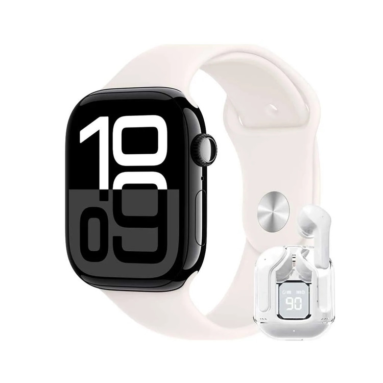ساعت هوشمند طرح اپل واچ مدل WS-X17 از ساعت های طرح اپل واچ سری 10 است و تولید برند WISME است. داخل بسته بندی این محصول علاوه بر ساعت یک عدد ایرپاد شیشه ای وجود دارد که شما بتوانید از آن برای مکالمه و پخش موسیقی استفاده نمایید. به غیر از آن 5 عدد بند با رنگ و طرح متنوع نیز وجود دارد که به دلخواه بتوانید آن را تعویض کنید. نوع شارژر این محصول وایرلسی است و خیلی آسان و سریع ساعت را شارژ می کند.