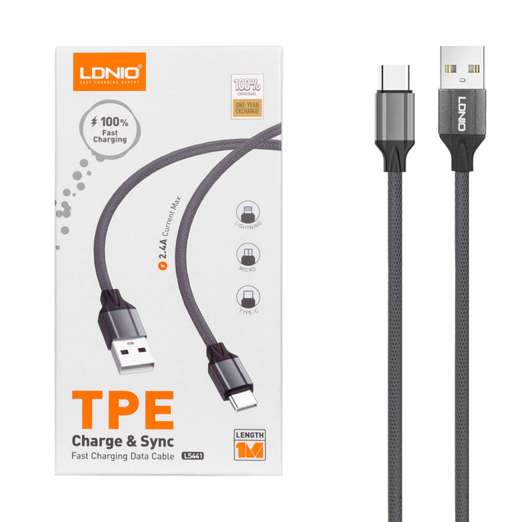 کابل شارژ فست LDNIO Type-C مدل LS441 - خاکستری