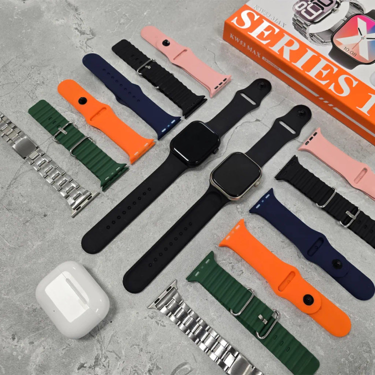 ساعت هوشمند طرح اپل واچ مدل KW53 MAX، یک انتخاب کامل برای کسانی است که به دنبال ترکیبی از طراحی شیک و امکانات پیشرفته هستند. این ساعت با ظاهر مدرن و قابلیت های متنوع، تجربه ای راحت و کاربردی از دنیای ساعت های هوشمند را ارائه می دهد. علاوه بر خود ساعت، لوازم جانبی مانند بند های متنوع و ایرپاد همراه آن، این محصول را به یک پکیج کامل و ایده آل تبدیل کرده است.