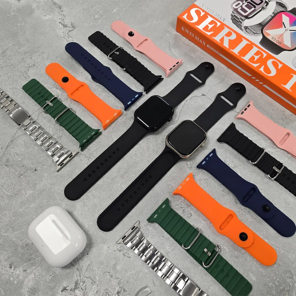 ساعت هوشمند طرح اپل واچ مدل KW53 MAX دارای پیکیج کاملی از تمامی قابلیت ها، ایرپاد هدیه و 7 عدد بند متنوع است که انتخاب مناسب و مقرون به صرفه ای نسبت به سایر مدل های مشابه است.