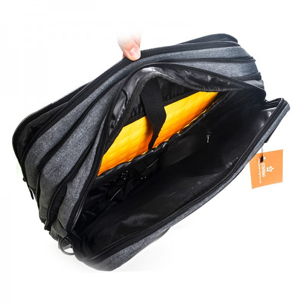 2 زیپ بزرگ اصلی | لبه های چرمی | کیفت دوخت و پارچه خوب | دارای ضربه گیر حباب دار داخلی برای محافظت از لپ تاپ | پورت ورودی AUX برای پخش موزیک | دارای محفظه های متعدد برای قرار دادن انواع لوازم و تجهیزات | دارای جای هندزفری در کناره های کیف
