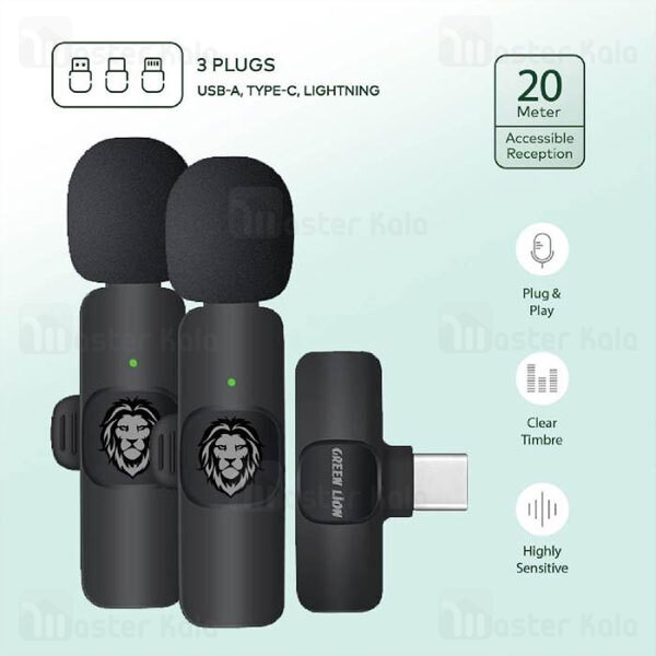 میکروفون یقه ای بی سیم گرین لاین Green Lion 3 in 1 Wireless Microphone