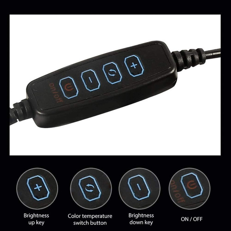 قطر خارجی ۲۶ سانتی متر پورت USB قابل استفاده با پاور بانک و یا آداپتور موبایل دارای ۱۲۸ قطعه لامپ LED دارای سه طیف رنگی نور دامنه: عکسبرداری از طریق موبایل و فیلمبرداری ، عکسبرداری دقیق ، روشنایی اضافی حداکثر بار در نظر گرفته شده: ۲۲۰-۵۰۰ گرم (بسته به طول استفاده) عرض تلفن هوشمند برای نصب: از ۵.۲ تا ۱۰.۵ سانتی متر سازگاری: تلفن های هوشمند ، دوربین فیلمبرداری و عکس اقلام همراه :رینگ لایت.هولدر.ریموت سیم دار.،سه پایه رومیزی.سر متحرک پایه