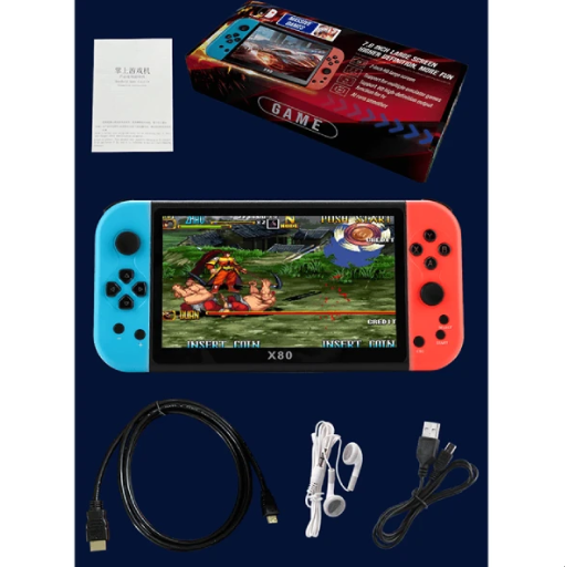 صفحه نمایش واقعی با رنگ های 800*480 و 7 اینچی کنسول X80، تصاویر زنده و گرافیک واضحی را ارائه می دهد و تجربه بازی را بهبود می بخشد. پردازنده چهار هسته ای ARMcortex-A9 با فرکانس اصلی 900 مگا هرتز، بازی را بدون لگ و با سرعت بالا ارائه می دهد.
