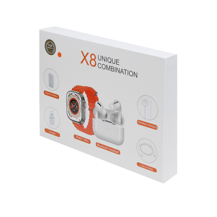 ساعت هوشمند Haino Teko مدل X8 UNIQUE COMBINATION به همراه ایرپاد و پاوربانک - نارنجی