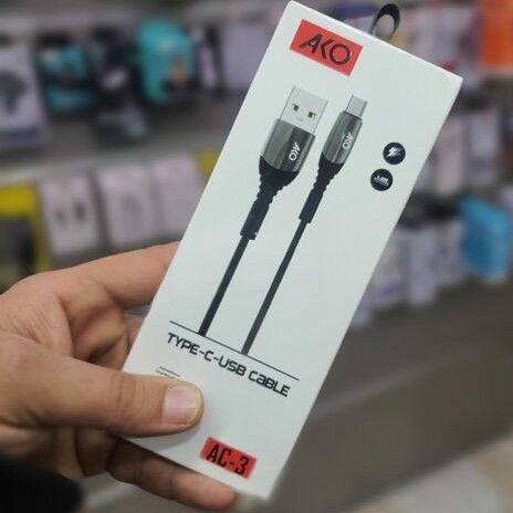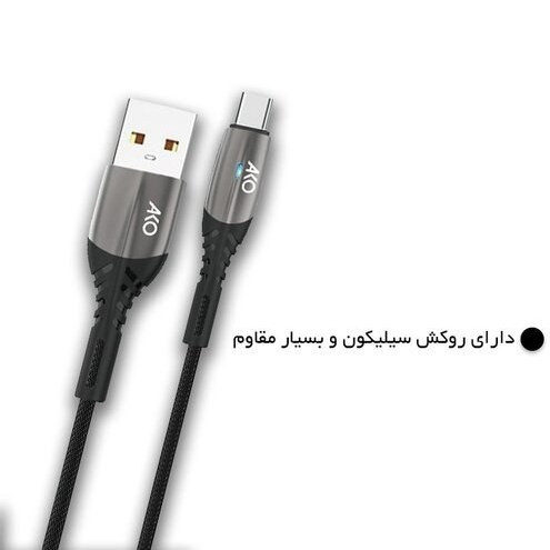 کابل شارژ تایپ سی Type-C آکو (AKO) مدل AC-3 فست شارژ همراه با LED مناسب برای شب