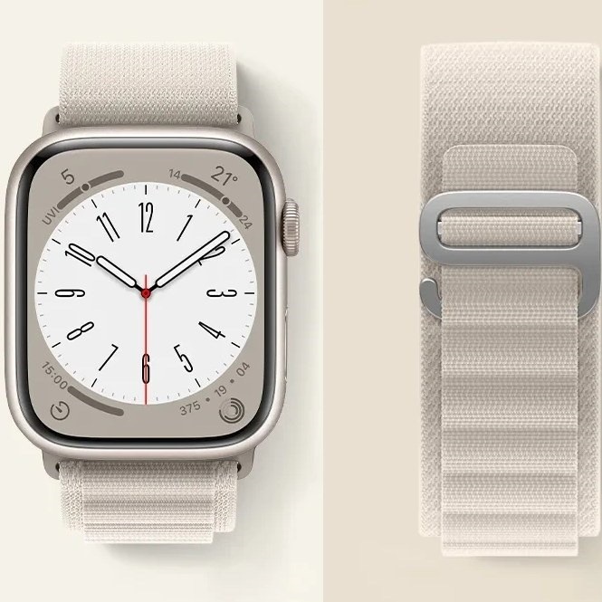 - بند آلپاین لوپ اپل واچ بسیار نرم و سبک است. این ویژگی باعث شده تا موقع استفاده مچتان اذیت نشود و بتوانید حین فعالیت مختلف مانند ورزش یا کوهنوردی تا ساعتهای طولانی آن را بکار ببرید.