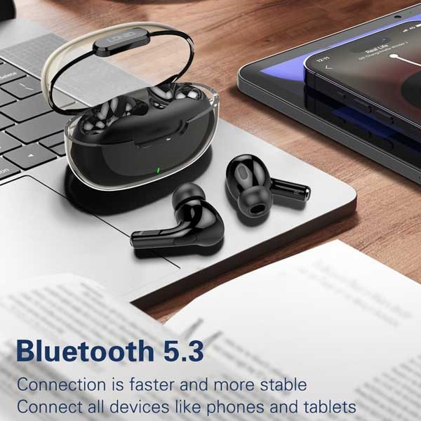 بلوتوث ورژن 5.3/ظرفیت باتری باکس 300 mAh/پخش HD صدا/درگاه شارژ کیس Type C/دارای دکمه لمسی/ظرفیت باتری هر یک از گوشی ها 30 mAh/مدت زمان پخش 4 ساعت/حداکثر مسافت جوابدهی بیسیم 10 m/زمان شارژ کامل 1 ساعت در صورت شارژ کامل گوشیها و کیس تا 20 ساعت PlayTime